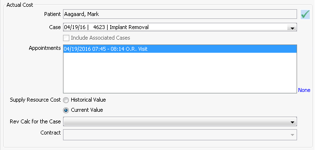 For an individual case, you can run a costing report based on either actual case costs that pull from the CDM module, or an estimate of case costs based on the Preference Card.