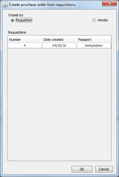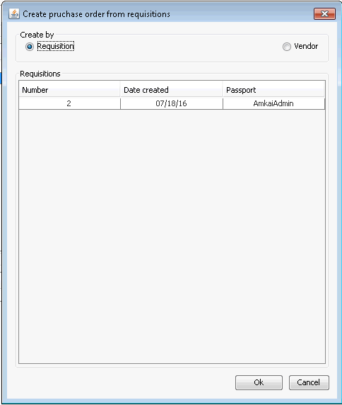 Click Create PO to access the Create purchase order from requisitionsCreate purchase order from requisitions dialog.