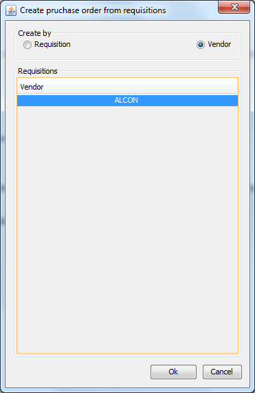 Select the Vendor radio button to create purchase orderpurchase order based on vendors.
