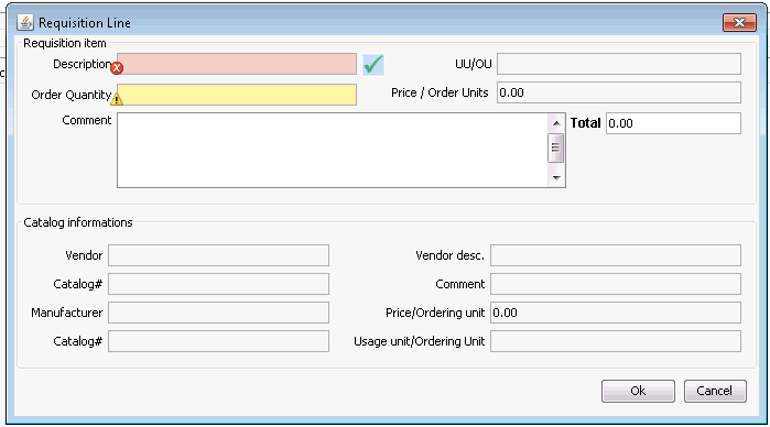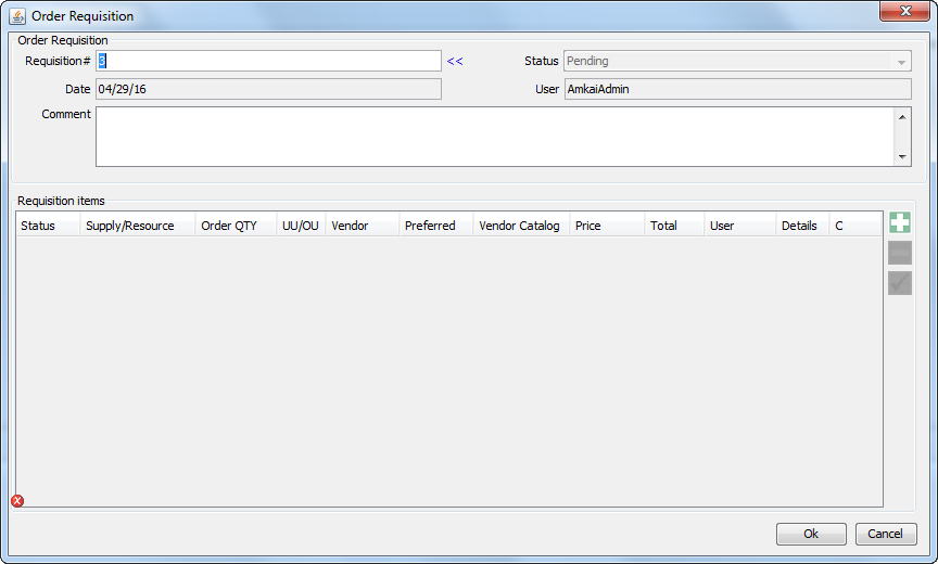 Repeat the steps above to add additional items to the Order Requisition. Once all items are added to the Requisition click OK to save the info and close the Order Requisition dialog. The Status of the requisition will be set to Pending.