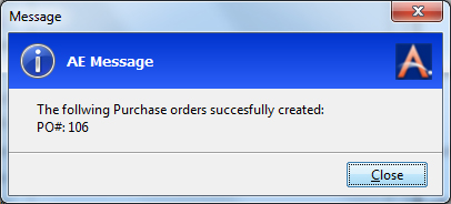 The system will display a messagemessage indicating that the Purchase Orders have been created.
