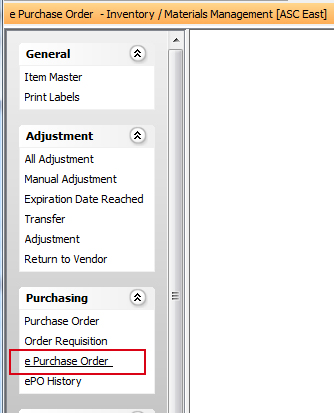 In the Inventory Management module click the ePurchase OrderePurchase Order Sheet Bar option under the Purchasing heading.