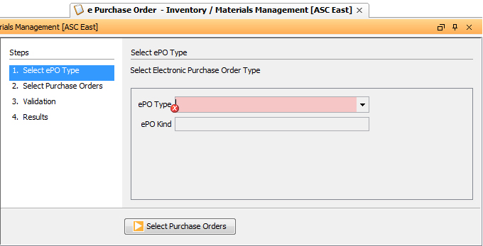 Select the appropriate ePO Type from the drop down list on the dialogdialog displayed. The ePO Kind filed will be automatically populated with the assigned EDI 850 transaction set.